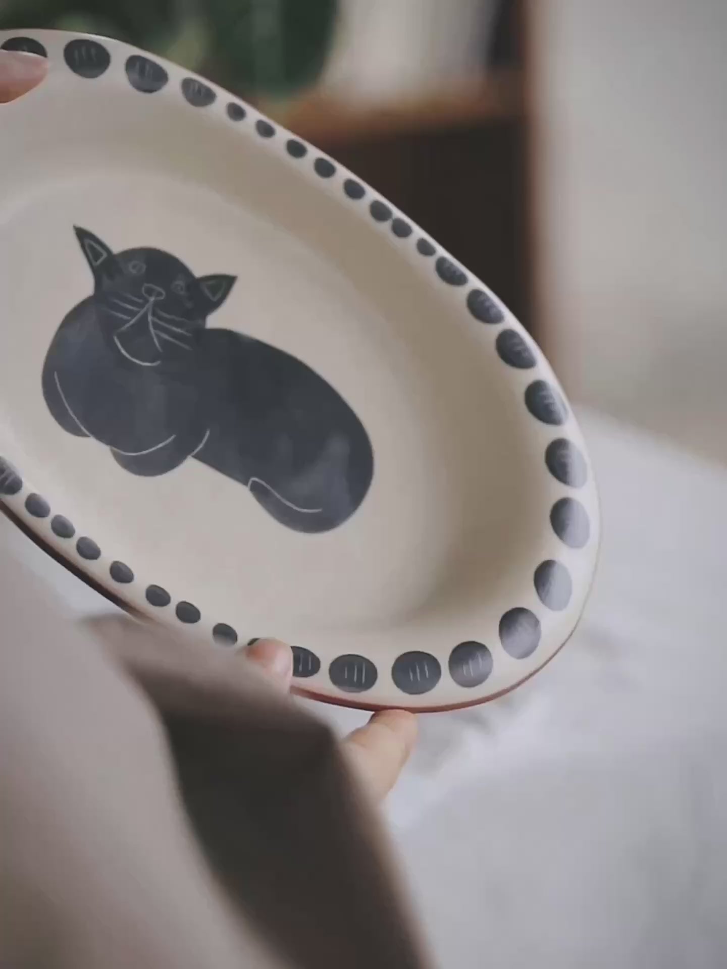 The Black Kitty Loki Plate - Hand-Painted Ceramic Plate