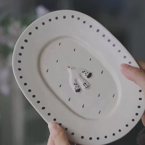 Inspired by the quiet rhythm of a sudden spring shower, this series features hand-sculpted bird reliefs navigating a landscape of indigo-blue droplets. With its elegant pedestal bases and tactile artistry, each piece captures a fleeting moment of nature’s peace, designed to bring a sense of calm to your daily table.